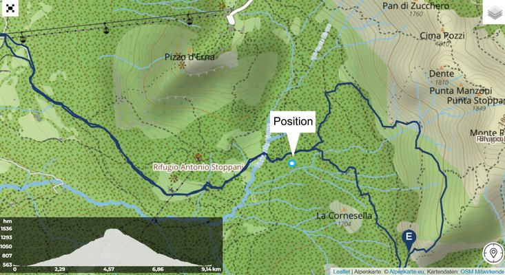 Deine GPS Position auf der Detailkarte, damit du deine Tour leichter findest und stets weißt, wo du dich auf der Tour befindest.