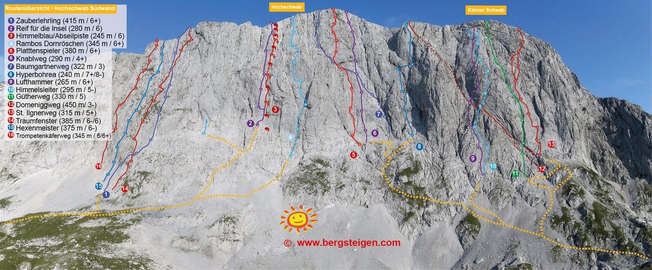 Exklusiver Zugang zu Wand- und Bergübersichten mit Kletterrouten, Klettersteigen, Klettergärten, Eisklettern, Hochtouren und Skitouren. -