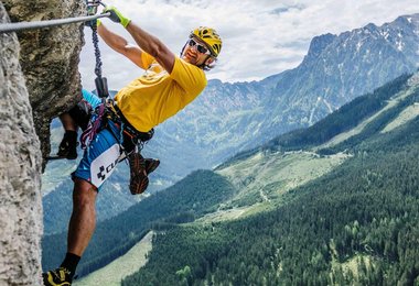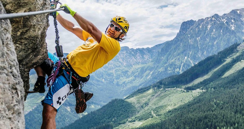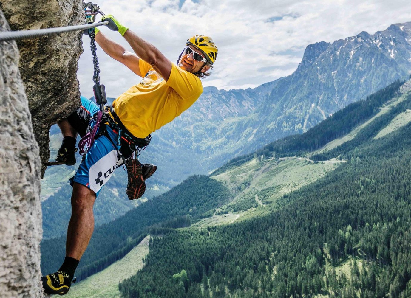 Am 03.Juni 2016 brach der Bergführer aus Admont im Gesäuse auf um von Os-ten nach Westen durch unser Land zu radeln und dabei alle extremen Kletter-steige zu erklettern. Auftakt war der mit „E“ bewertete Klettersteig „HTL Steig und Blutspur“ an der Hohen Wand in Niederösterreich. Nach einem kurzen Heimspiel im Gesäuse und Dachstein warten im Land Salzburg weitere neun ex-treme Klettersteig Möglichkeiten um sich die Arme lang zu ziehen. Über Kärnten und Tirol geht es dann radelnd und kletternd weiter bis nach Vorarlberg.