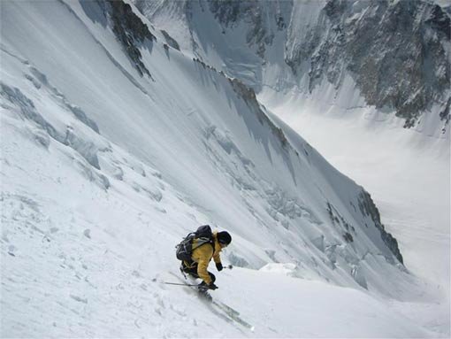 2500 Höhenmeter, vom Gipfel bis zum berühmten Eisbruch 500 Meter über dem Basislager haben die Extremskifahrer hinter sich gebracht, ohne ihre Ski auch nur ein einziges Mal abzuschnallen oder sich abzuseilen. Eine herausragende Leistung, die in dieser Form nur sehr wenigen internationalen Skibergsteigern gelungen ist. Dabei mussten sie sich durch Eis und Nassschnee kämpfen und waren den schwierigen Bedingungen, die in diesen großen Höhen herrschen, ausgesetzt.