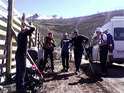 27.11.2004 Am frühen morgen fuhren wir noch auf über 3 500 m hinauf, mitten ins Schigebiet (Parva). Nach einigen Hügeln wanderten wir im Wesentlichen nur noch bergab bis zu unserem heutigen Lagerplatz auf ca. 3 300 m, genannt Piedra Munerada. Es ist wunderschön hier und wir haben durch die absichtliche langsame Steigerung der Schlafhöhe eine optimale Akklimatisation.