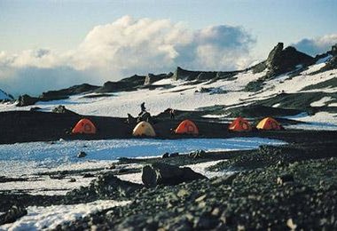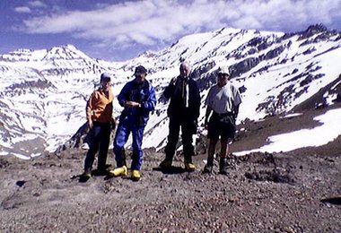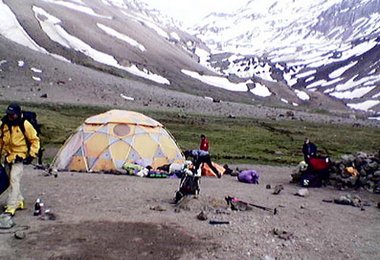 Hallo Leute, dies ist wieder Walter Laserer aus dem Basecamp des Aconcaguas. Unsere Gruppe ist vollzählig eingetroffen. Gestern hatten wir wieder mal einen anstrengenden Tag. Gute 7 Stunden dauerte die Wanderung über riesige Schwemmlandschaften des Rio Horcones hier herauf ins Basislager. Ausser uns sind noch viele andere Gruppen aus der ganzen Welt hier. Wir haben unsere eigenen Köchin mit, die uns mit allerlei Köstlichkeiten verwöhnt. Die Verhältnisse am Berg scheinen gut zu sein, heuer war eine Saison mit sowieso wenig Schnee. Der Wind ist allgegenwärtig, es weht einfach ständig.