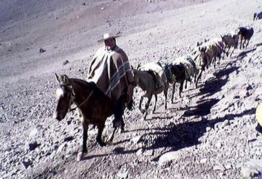 In der Früh fuhren wir noch die ca. 10 km von Penitentes zum Eingang des Nationalparks Aconcagua. Wir mussten uns dann nochmals anmelden und unser Gepäck wurde auf Mulis verladen. Gemütlich wanderten wir dann vorbei an der in einer grünen Oase liegenden Laguna Horcones das Tal des gleichnamigen Flusses bergauf. Auf ca. 3500 m erreichten wir dann das Zwischenlager des Anmarsches bereits nach ca. 3 stündiger Wanderung.