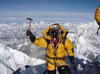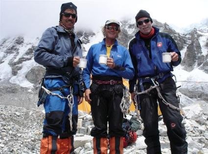 Um exakt 6.40 Uhr erreichten wir dann den Gipfel. Ein überwältigendes Gefühl. Weit reichte unser Blick nach Tibet, und zu vielen anderen Achttausendern der Himalajakette. Auch von Norden erreichten einige Bergsteiger den Gipfel. Wir hatten einfach einen Traumtag erwischt. Kaum Wind und ein unbeschreiblich schönes Wetter. Um 07.20 Uhr begannen wir bereits wieder mit dem Abstieg. Der Abstieg ging sehr rasch voran und bereits nach einigen Stunden fanden wir uns zu einer bequemen Rast am Balkon ein.