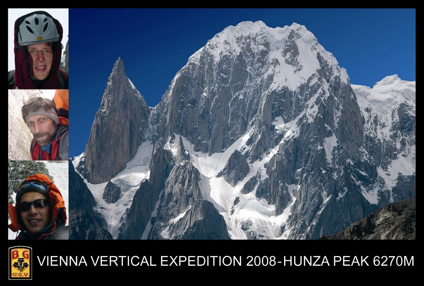 6270 Meter ragt er in den Himmel Pakistans, jener Berg, der uns seit Monaten beschäftigt. Schaut man in das Tal der Hunzas, so trifft das Auge unweigerlich auf die bis zu 1200m abbrechende Südwand des Hunza Peaks. Dieses beeindruckende Konstrukt aus Eis und Fels ist bis heute noch undurchstiegen. Als ehrgeiziges Ziel haben wir uns vorgenommen, jene Granitwand zu durchsteigen. Trotz der günstigen geographischen Lage, gelang es erst einem britischen Team, 1991, den Hauptgipfel des Karakorum-Sechstausenders zu erreichen.