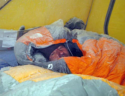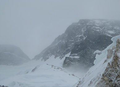 Nachdem wir gestern rasch auf Camp 2 aufgestiegen waren und für heute den Gipfelversuch auf dem Programm hatten, zerstörte der Sturm wieder all unsere Hoffnungen. Wir kämpften die ganze Nacht damit, dass unser Zelt nicht weggeblasen wird und Gott sei Dank ist es nicht zerstört worden. Wir entscheiden uns für den Abstieg und ließen alles zurück, weil wir es noch einmal versuchen werden.....Ich weiß nicht, wie oft wir in den zwei letzten extrem kalten Monaten hier aufgestiegen sind, doch unglaublicher Weise haben wir noch immer die Motivation es noch ein letztes Mal zu versuchen.