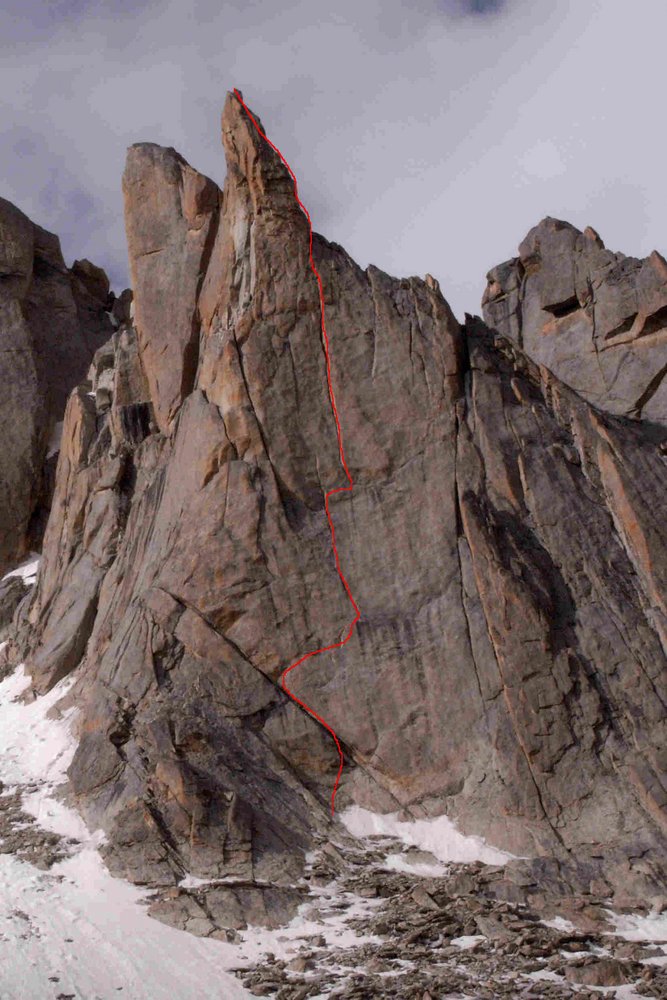 Weder über die Route, noch über den Gipfel waren uns Informationen bekannt. Erstaunlich bei der wunderschönen Form, welche stark an die Dru in Chamonix erinnert. Beim Klettern fanden wir diverse Begehungsspuren, welche auf mehrere Begehungen hindeuten (vielleicht ist der Redaktion etwas über die Begehung bekannt).