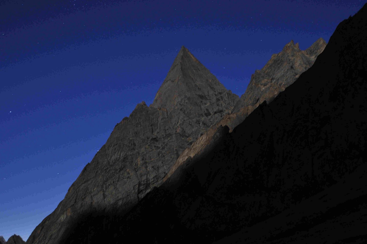 Die perfekt symmetrische Felspyramide stach uns bereits bei den Vorbereitungen zu Hause ins Auge. Vom Basecamp ist der Gipfel gut in einem Tag zu erreichen, wobei sämtliche Grate auf den Gipfel bereits schon teils mehrfach begangen wurden.