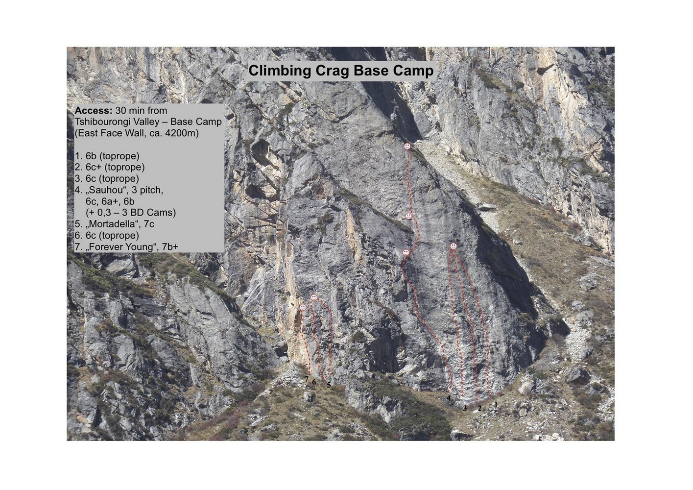 Zwei Tage darauf wurde das mühsam hinaufgeschleppte Material wieder mühsam hinuntergeschleppt und danach wurde es nun wirklich gemütlicher angegangen. Dass vor der Heimreise Simon noch eine 7c Sportklettertour namens „Mortadella“ auf 4200 m kletterte und Vitto noch alleine auf einen ca. 5200 m hohen Gipfel stieg, soll nur noch am Rande dieser erfolgreichen Expedition erwähnt werden...