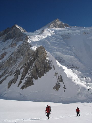 Die Rückreise gestaltet sich dann beinahe anstrengender als die Besteigung des 13. höchsten Gipfel der Erde: Aufgrund des verspäteten Eintreffens der Träger im Basislager müssen wir in einer Eilaktion in drei Tagen nach Hushe trekken. Belohnt werden wir jedoch mit einer mystischen, traumhaften Vollmondnacht, in der wir den Gondogoro La (5650m) überqueren. Jeeps bringen uns nach Skardu. Dann jedoch verbringen wir eine Nacht im Bus, weil ein Teil des Karakorum-Highways nach starken Regengüssen des Monsuns weggespült worden ist. Anderntags übernehmen Träger unser Gepäck und wir waten 15 Kilometer durch Schlamm und Schutt bis die Straße wieder befahrbar ist. Tag und Nacht sind wir nun unterwegs, um letztendlich gerade noch pünktlich in Islamabad unseren Rückflug nach Deutschland zu erreichen.