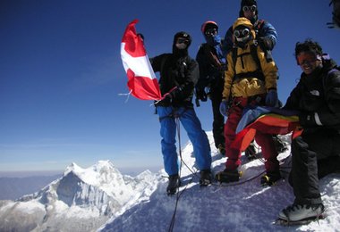 Start ist, wie auch auf den anderen Bergen zwischen 1 und 2 Uhr in der Früh, um noch vor Mittag den Gipfel zu erreichen, da der Schnee dann sehr schnell weich wird und den Aufstieg unnötig erschweren würde. Am Gipfel empfangen uns zu unserer aller Überraschung deutsche Stimmen (Nachbarn aus Bayern) die uns zu unserem Gipfelsieg gratulieren.