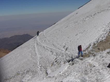 Technisch etwas anspruchsvoller, da man hier auf der Nordseite ganzjährig harte Schneefelder findet, die eine gewisse Erfahrung am Eis unerlässlich machen. Das Gefühl des Gipfelsieges ein Gemisch aus Freude nicht mehr höher steigen zu müssen und das Erfüllen eines Traumes.