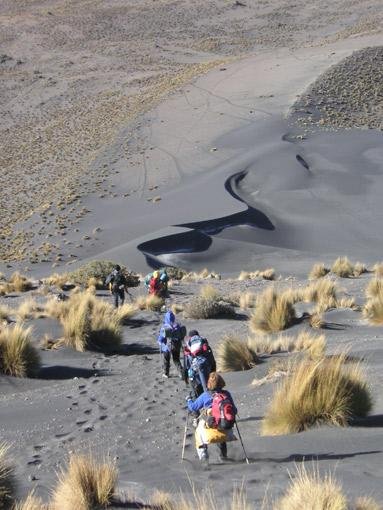 Technisch ist der „El Misti“ nicht aufwendig da er zumindest im niederschlagsarmen Winter fast völlig schneefrei ist, und man weder Steigeisen noch Pickel benötigt. Die einzige Herausforderung sind die Höhe, und der sandige Untergrund, der deine Ausdauer vor eine harte Prüfung stellt.