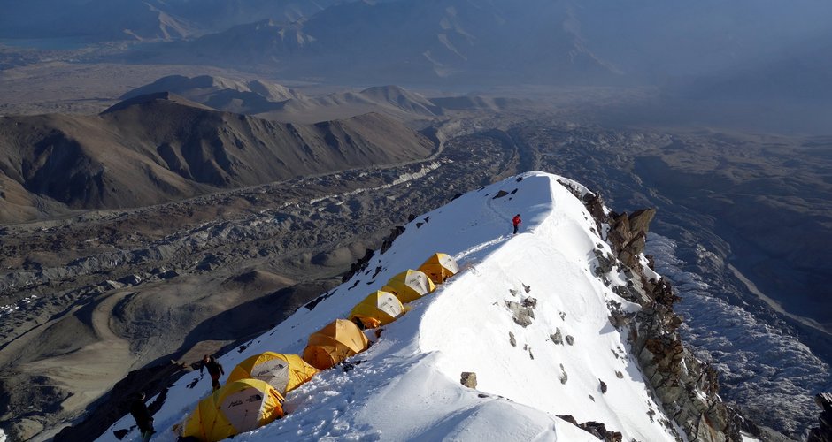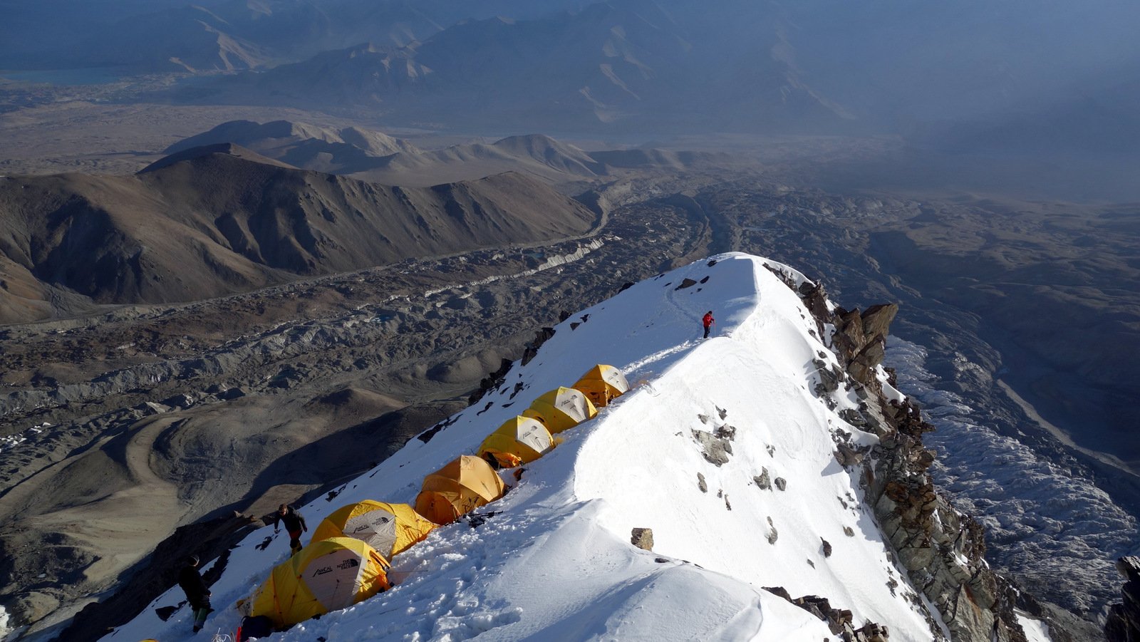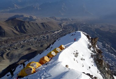 Dafür musste im unteren Bereich des Berges ein exponierter „Biancograt“ überwunden und ausdauernd die 800 Höhenmeter und mehrere Kilometer lange Gipfeletappe über den langgezogenen Gipfelrücken durch tiefen Schnee gespurt werden. Zwei Hochlager (C1 5525 m, C2 6300 m) wurden auf der Route errichtet. Nach der Rückreise über Kashgar (China) und Bishkek (Kirgisistan) kehrte die Gruppe vor einigen Tagen wohlbehalten von ihrem Abenteuer nach Hause zurück.