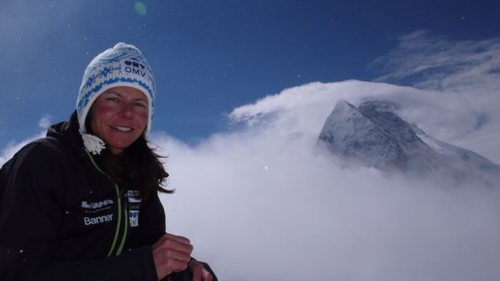 Gerlinde Kaltenbrunner steht auf dem Lhotse