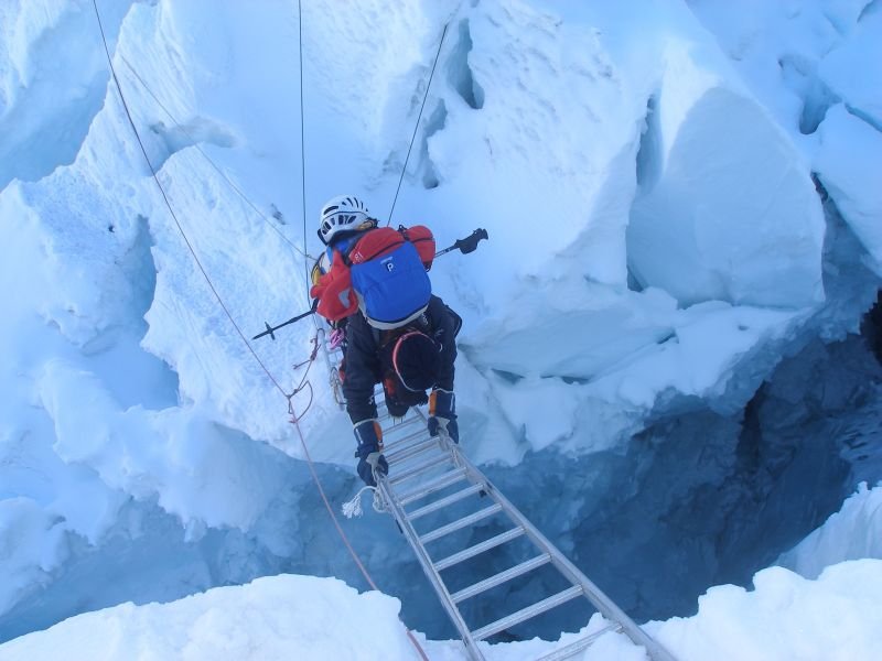 Der Samstag beschert uns einen letzten Tag Einsamkeit am Berg. Das Hochtal des Western Cwm - eingerahmt von Nuptse, Lhotse und Everest - ist um diese Jahreszeit der Brutofen schlechthin. Der abschliessende Eisfall hat sich in den drei Tagen, seit wir aufgestiegen sind, völlig verändert. Nur noch das Eigengewicht halten teilweise die Fixseile und Leitern. Das letzte Stück hinunter ins fast leere Basislager begleitet uns die Angst umfallender Eistürme und einbrechender Seracs. Letztlich kommen wir gut an - Freude pur, auch wenn der Gipfel nicht hat sollen sein.