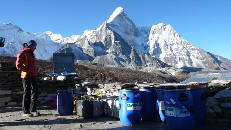 Nach einer letzten Zwischenübernachtung in Lobuche (4900 m), kamen wir gestern dem 23. April im Basislager von Lhotse und Everest an. Deutlich weniger Leute sind dieses Jahr hier, unser vorausgegangener Koch Tekbahadur hat einen kleinen, leicht erhöht liegenden Platz mit schöner Rundumsicht ausgewählt und dort schon unsere Zelte aufgebaut. Unser Zuhause für die nächste Zeit. Mit Küchen- und Messzelt, einem Dusch- und Toilettenzelt. In letzterem steht eine Tonne, die von Zeit zu Zeit von einem Träger nach außerhalb des Gletschers befördert wird. Sauber ist es hier, ganz im Gegensatz zu dem, was leider immer noch in der Öffentlichkeit steht.
