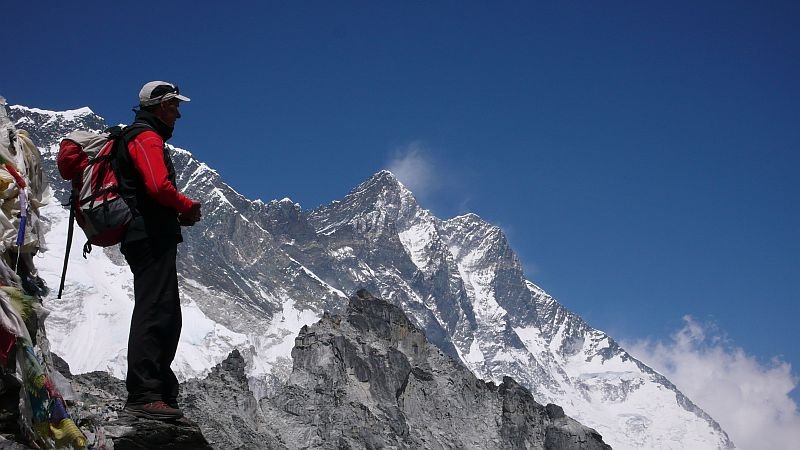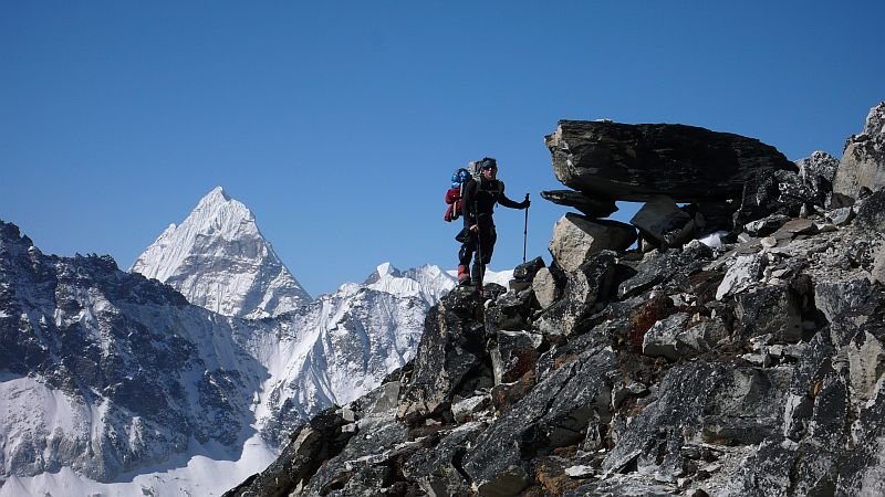Am Nachmittag begann es stark zu schneien, so dass wir für den Rest des Tages gezwungen waren in den Zelten zu bleiben. Dafür erwartete uns der Morgen unseres vierten „Ausflugstages“ mit einer strahlenden Aussicht über fast das gesamte Everest-Gebiet und die Südwand des Lhotse. Nach einem hurtigen Abstieg waren wir um 11:00 Uhr zurück in Chukhung und freuten uns über vier riesige Berge Bratkartoffeln.