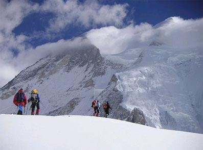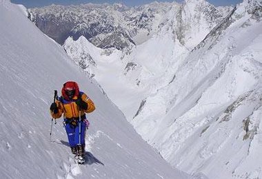 Unglaublich wechselhaftes Wetter mit dauernden Niederschlägen kennzeichnet die bisherige Karakorum Saison. So wurde vorsichtshalber der Aufstiegsweg zu Lager I mit ca. 100 Bambus-Stangen markierten, auch beim Japaner-Couloir - eine bis ca. 55° steile Eis- bzw. Schneerinne - wurde wegen der Schneebrettgefahr links des eigentlichen Couloirs eine Felsrippe versichert.