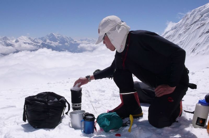 In den nächsten Tagen werden wir den Wetterbericht sehr genau beobachten und bei etwas Wettersicherheit nach einigen Ruhetagen versuchen in Richtung Lager III und von dort direkt zum Gipfe zu starten. Drücken Sie uns die Daumen, dass die nächsten Tage etwas trockeneres Wetter bringen. Unserem Aufstieg zum höchsten Punkt des Manaslu sollte nach einger Versicherungsarbeit bis Lager III dann nichts mehr im Wege stehen.