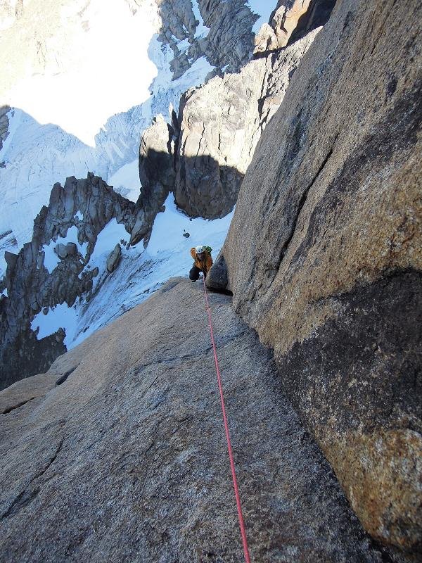 In den weiteren 2 Wochen folgten, begünstigt durch die sehr stabile Wetterlage noch einige, fast schon „klassische" Erstbegehungen durch perfekten Fels, welche vom Team Morel/Lietha/Wyser alle im Alpin-Stil geklettert wurden. „Lucky Mushrooms", 7+ (6b+), „Northern Comfort", 7- (6a+) und „Waslala ", 7- (6a+) können sich durchaus mit den schönsten Granit-Routen in den Alpen messen.