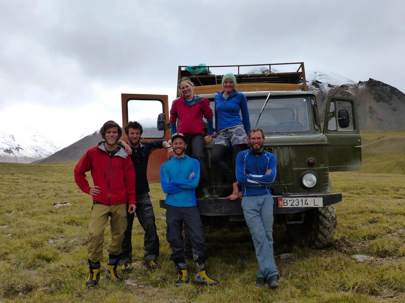 Der orange Punkt am Horizont wird immer kleiner und verschwindet bald hinter der nächsten Geländekuppe. Hier stehen wir nun, sechs hochmotivierte Bergsteiger und beobachten wie unser Transportvehikel, ein 50 Jahre alter Militärtruck GAZ-66, samt unserem Fahrer Sergej, endgültig unseren Augen entschwindet. Die letzten drei Tage verbrachten wir heftig durchgeschüttelt in der Personenkabine unseres sehr zweifelhaften Gefährts. Fasziniert von der einzigartigen Bergkulisse stehen wir in der totalen Einsamkeit am Eingang unseres auserkorenen Expeditonszieles, dem Dzhirnahgaktu Tal im westlichen Kokshal Too Gebirge an der chinesisch-kirgisischen Grenze. Neben uns liegen ungefähr 500 kg Ausrüstung und Verpflegung, welche uns hoffentlich unversehrt durch die nächsten 4 Wochen bringen. Die letzten 6 Monate waren für uns Expeditionsneulinge, abgesehen von zahlreichen Trainingseinheiten und Vorbereitungstouren, bestimmt von intensiven Diskussionen und Schätzungen über das benötigte Material. Informationen der 2 bisherigen Expeditionen ins Dzirnagakhtu Tal gaben uns nur einen ungefähren Eindruck dessen, was uns erwarten würde.