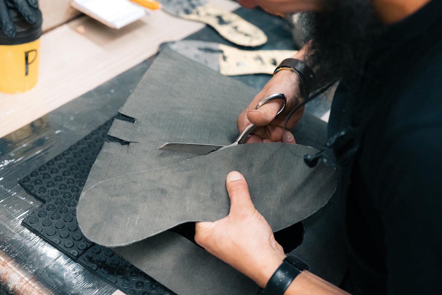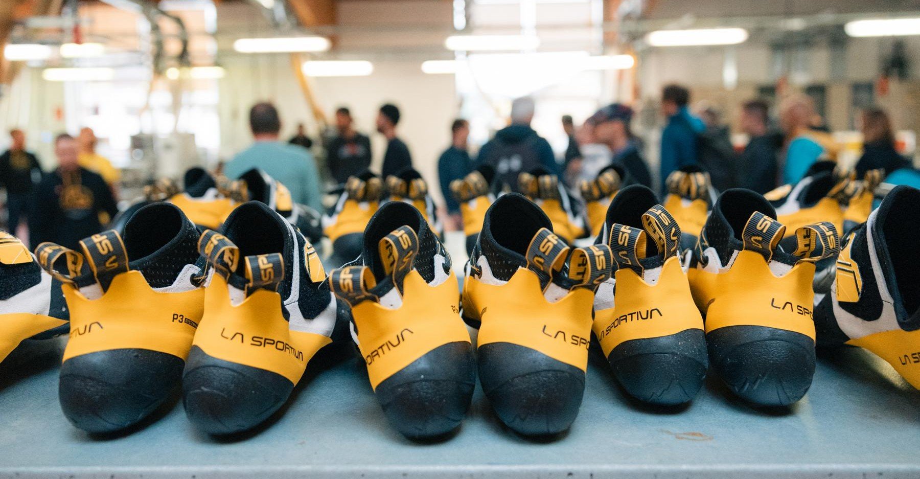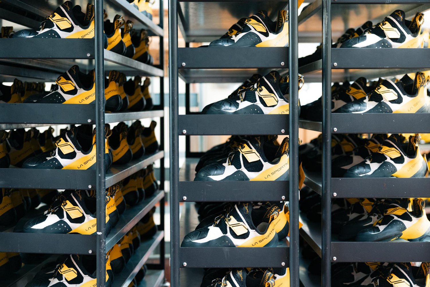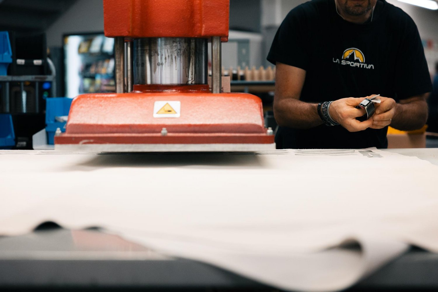 Trotz modernster Maschinen ist vieles bei La Sportiva immer noch reine Handarbeit. Leder wird zugeschnitten, Obermaterialien vernäht, Sohlen per Hand verklebt – Arbeitsschritte, die Präzision und Erfahrung verlangen. Bis zu 200 einzelne Teile und bis zu 150 Handgriffe stecken in einem Paar Kletterschuhe.