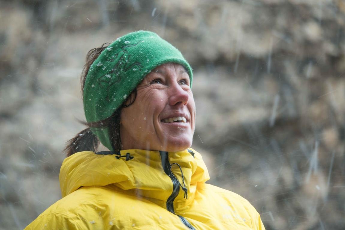 Ein Gewitter türmte sich auf als die Nacht hereinbrach und brachte einen ordentlichen Hagelschauer mit sich. Das Team kletterte im Dunkeln weiter bis zwei Seillängen unterhalb des Gipfelgrates, um vor dem starken Wind geschützt zu bleiben. Dort richteten sie mühsam ein unbequemes und sehr ausgesetztes Biwak ein. Was wäre der Kyzyl ohne Spindrift...