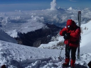 Nach der gemeinsamen Skiabfahrt sind sie nach 23,5 Stunden zurück im Basislager (5.000 m)