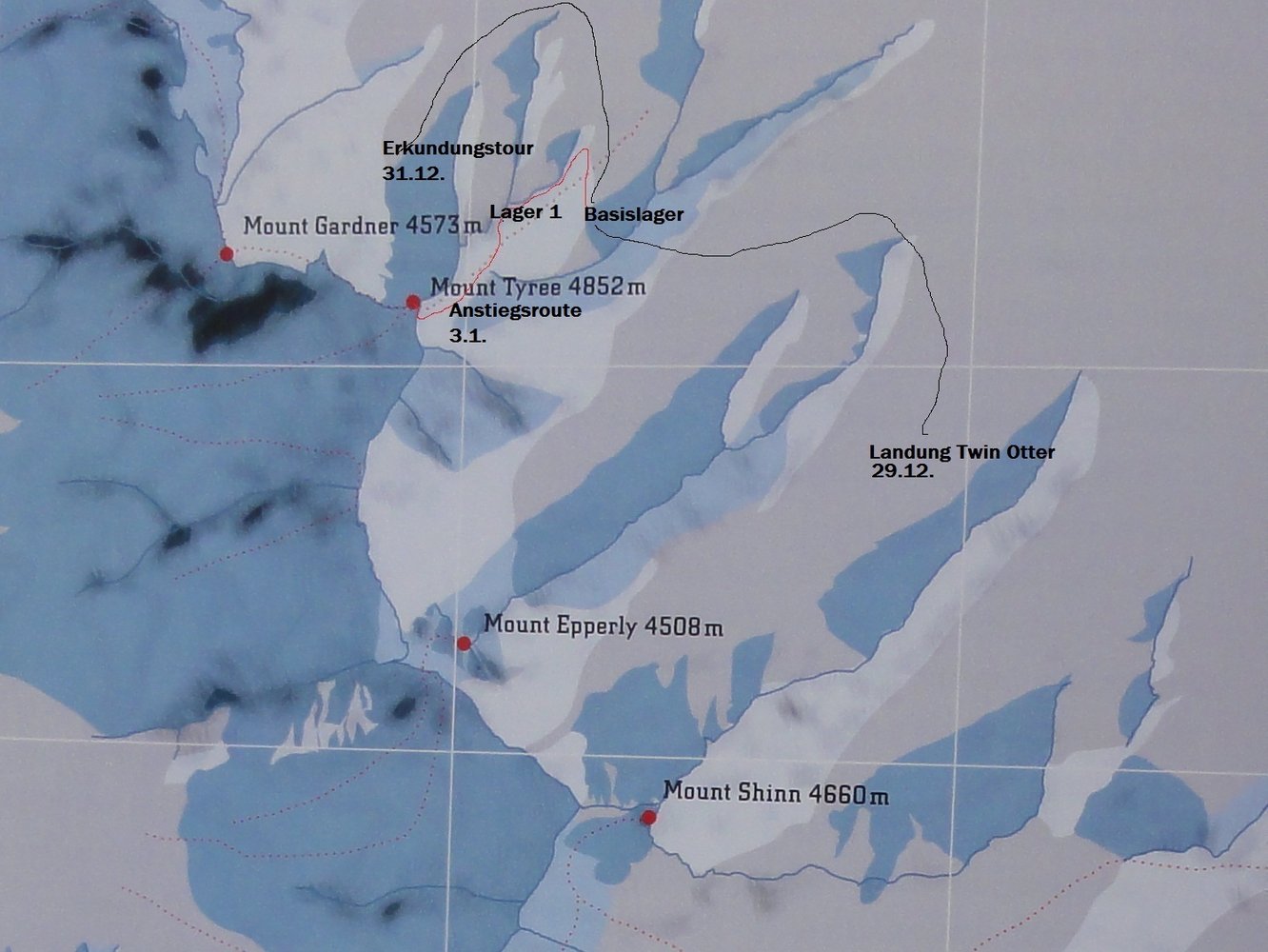 Gemeinsam mit Christian Stangl und Hans Kammerlander wollte ich in der Saison 2011/2012 den zweithöchsten Berg der Antarktis, den Mt. Tyree besteigen und anschließend die Ellsworth Mountains zurück nach Union Glacier durchqueren.