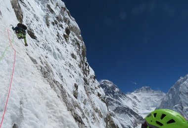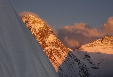 Wir waren am Pumori ganz alleine, am nahen Everst sah die Sache ganz anders aus. Schon bei unserem ersten Versuch (wir waren zu zweit) der Route im Frühjahr 2007 sahen wir die unzähligen Everst-Aspiranten, die Lichterkette der Stirnlampen, die sich zwischen den Lagern auf und ab bewegte. Das Everst Basecamp war wie ein kleines Dorf, das von ca. 1000 Leuten „bewohnt wird“, das nächtliche Lichtspektakel war fast ein Reality Show. Die sahen – wenn überhaupt – aber nur zwei kleine Stirnlampen in einer mächtigen Himalaya-Wand.“ erzählt Zsolt.