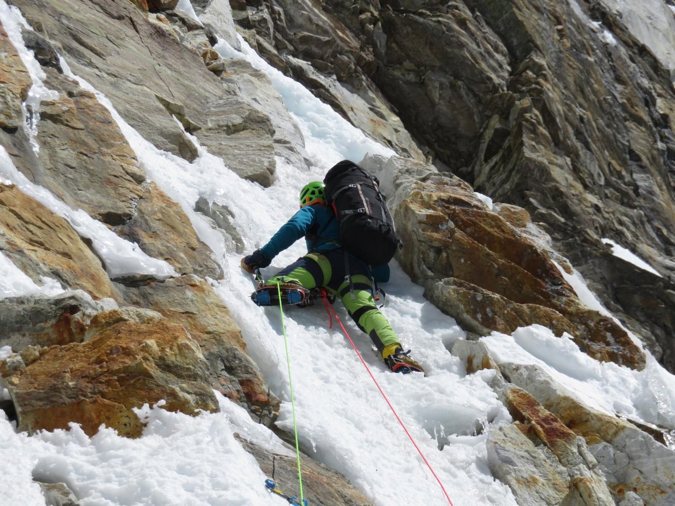 Beim Zweiten Anlauf brauchten die drei Rumänen fünf Biwaks. Die ersten beiden bestanden nur aus einer Plane, im dritten Camp lagen sie einem 2-Mann-Zelt und die letzten Biwaks machten sie sie auf dem Gipfelgrad. Die Route bestand größtenteils aus Eis, mit einigen Mixed-Passagen, die schwer abzusicheren waren. Den Mixed-Teil haben sie mit R bewertet.
