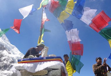 Tags darauf erreichten wir Namche Bazar. Über Pangboche und Dingboche ging es nach Chunkhung. Um schon akklimatisiert ins Basislager zu kommen, war unser Plan im Hochlager des Island Peak 6.189 m zu übernachten. Den Gipfel betraten wir bei Prachtwetter.