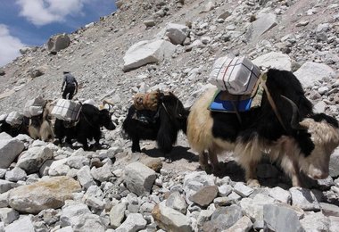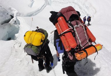 Unsere gesamte Sherpamannschaft erreichte auch am selben Abend mit sehr großen und schweren Rucksäcken das Basislager.