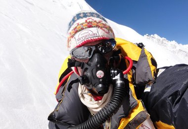 Zum erste Mal beim Bergsteigen künstlichen Sauerstoff atmen