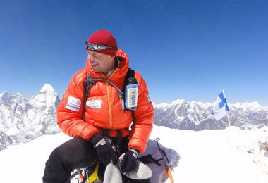 Um 6.04 stehe ich mit Alex, Sepp, unseren Sherpas und anderen am höchsten Punkt der Erde. Der Ausblick ist phänomenal. Von hier aus sehe ich sogar die Erdkrümmung. Lhotse, wo die Tamara Lunger heute hinauf will, Makalu, Cho Oyu und unzählige Gipfel sind zu sehen. Auch über den Nordgrat erreichen Bergsteiger den Gipfel. Was für ein Tag.