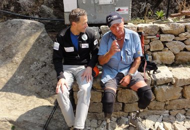 Am Rückweg ins Basislager traf ich zufällig Peter Habeler. Peter hat 1978 als erster Mensch, gemeinsam mit Messner, den Everest ohne künstlichen Sauerstoff bestiegen.