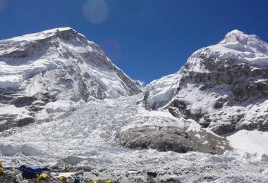 Wir erreichten wir dann unser Everest Basislager. Viele Expeditionen und noch mehr Zelte standen schon hier. Die Küchenmannschaft bestand aus vier Personen und insgesamt hatten wir acht Climbing-sherpas. Ein 2008 verunglückter Bergsteiger aus der Schweiz sollte von ihnen vom Südsattel geborgen werden.