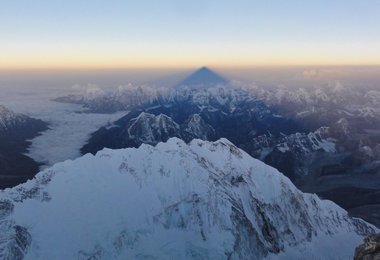 Am Balconi wechseln wir die erste Sauerstoffflasche gegen eine Volle. Jeder von uns hat drei, die Sherpas zwei für den Auf- und Abstieg. Leider ist der Sherpa von Sepp sehr langsam und wir müssen lange warten. Jyamchang beschließt, bei Sepp zu bleiben und lässt mich alleine gehen. Er sagt mir noch, dass ich mit einer Flasche zum Gipfel und wieder zurückkommen werde. Nun folge ich meinem eigenen Rhythmus. Die Taktik bis ins Lager 4, zum Südcol, Kräfte zu sparen bewährt sich nun. Im gestuften Felsgelände komme ich schneller und kraftsparender als die anderen voran. In völliger Dunkelheit stehe ich alleine am Südgipfel. Ich überlege kurz, ob ich auf andere Bergsteiger warten soll, klettere dann aber weiter. Beim Hillary-Step angekommen nehme ich einen Lichtschein im Osten wahr, doch hier ist noch tiefe Nacht.
