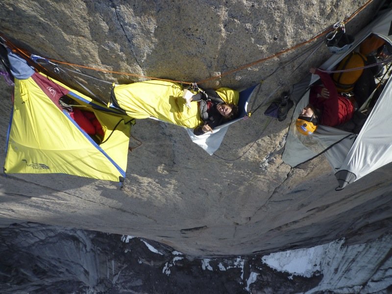 Die Techno-Soloexpertin Silvia Vidal aus Catalunya schloß sich uns aus logistischen Gründen an. Als sie sich für ihr eigentliches Projekt, den Mt. Tiroka über eine neue Tour solo zu machen, nicht wohl fühlte, luden wir sie ein, mit uns zu klettern. Für uns Freikletterer war es interessant, etwas von ihr über das Technoklettern zu lernen und sie hatte auch ein Portaledge, was gut war, weil wir nur ein Portaledge und zwei Hängematten mit hatten. Jetzt musste nur einer von uns in der Hängematte schlafen.