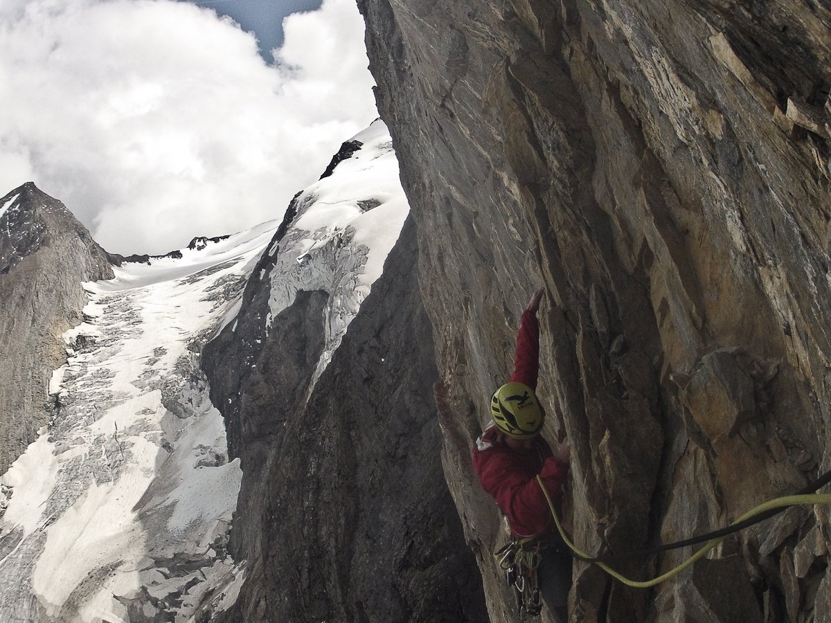 Hansjörg hatte lange überlegt, ob es nicht zu gefährlich sein könnte, im Sommer zum Projekt zurück zu kehren. Obwohl die Wand nordseitig ausgerichtet und zwischen Gletschern eingebettet ist, wird es da oben nicht gefrieren. Und ist die Linie überhaupt ohne Bohrhaken möglich? Doch er war der Meinung, dass es zumindest einen Versuch wert ist.
