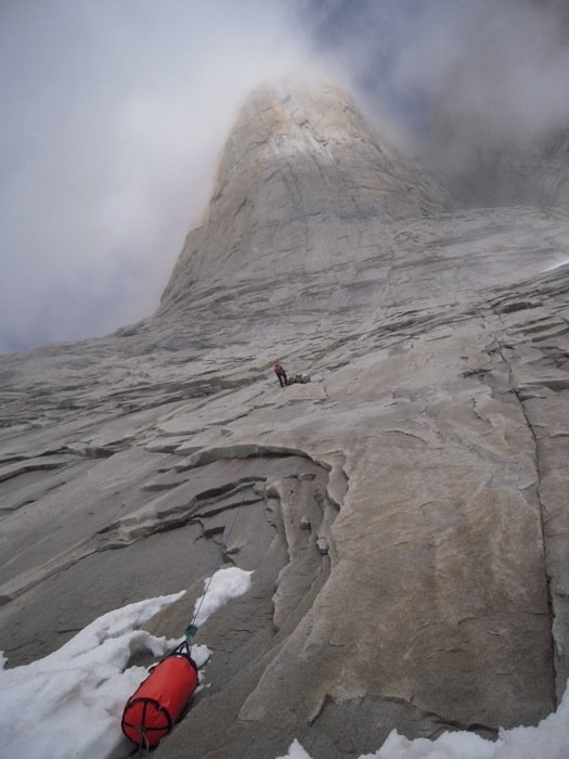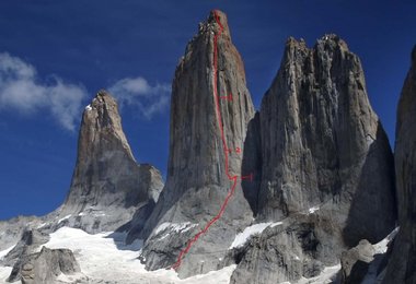 Die drei Bergsteiger waren seit Ende Jänner im Torres del Paine National Park und brachten anfangs das Material zum Wandfuß, bevor sie am 24.1. in die Wand aufbrachen. Mit Essen für 15 Tage arbeiteten sie sich im capsule style die Wand hinauf, wobei sie zwei Portaledge-Camps nach der 10. Seillänge, wo sie 7 Tage verbrachten, und nach der 17. Seillänge, wo sie 6 Tage verbrachten, errichteten.