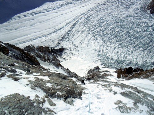 Bei winterlichem, aber gutem Wetter kletterten wir gestern, Dienstag, wieder in der steilen Süd-Wand des Hidden Peak.