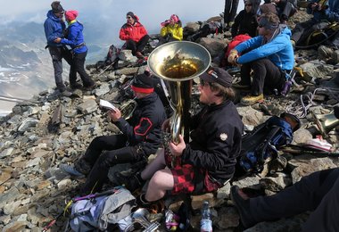 Die abwechslungsreiche Hochtour über einen der bekanntesten Aufstiege der Ostalpen, vorbei am Vermuntgletscher und über den Ochsentaler Gletscher, ließen sich auch Vorarlbergs Landeshauptmann Markus Wallner und Tirols Landeshauptmann-Stv. Josef Geisler nicht entgehen. Mehr als 100 Teilnehmer wurden schließlich mit einem Panoramablick über zahlreiche Gletscher belohnt und konnten die Begeisterung von Erstbesteiger Jakob Weilenmann, die er am 14. Juli 1865 niederschrieb, auch 150 Jahre später selbst nachempfinden: „Das Auge schwelgt im Anblick der rings am Himmelssaum funkelnden Firne, das Herz fühlt sich ergriffen von der feierlichen Stimmung, die durch den unermesslichen Raum weht.“