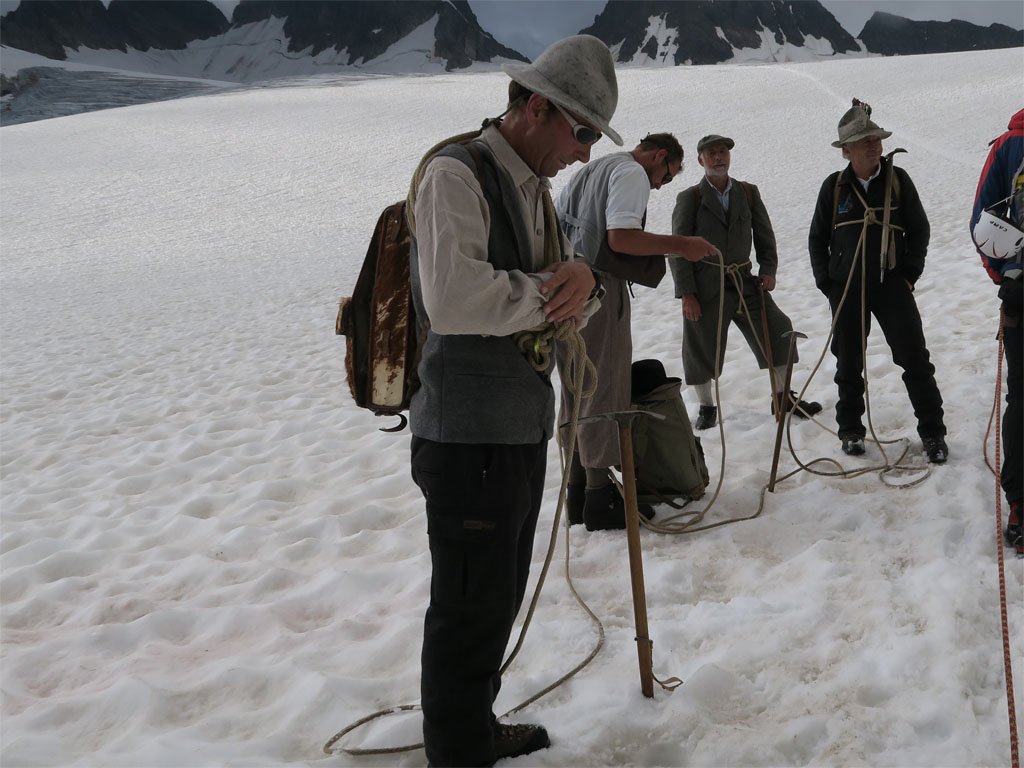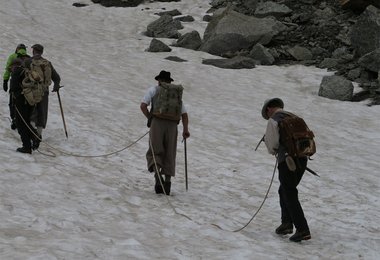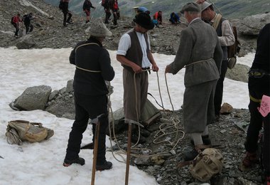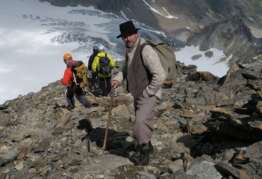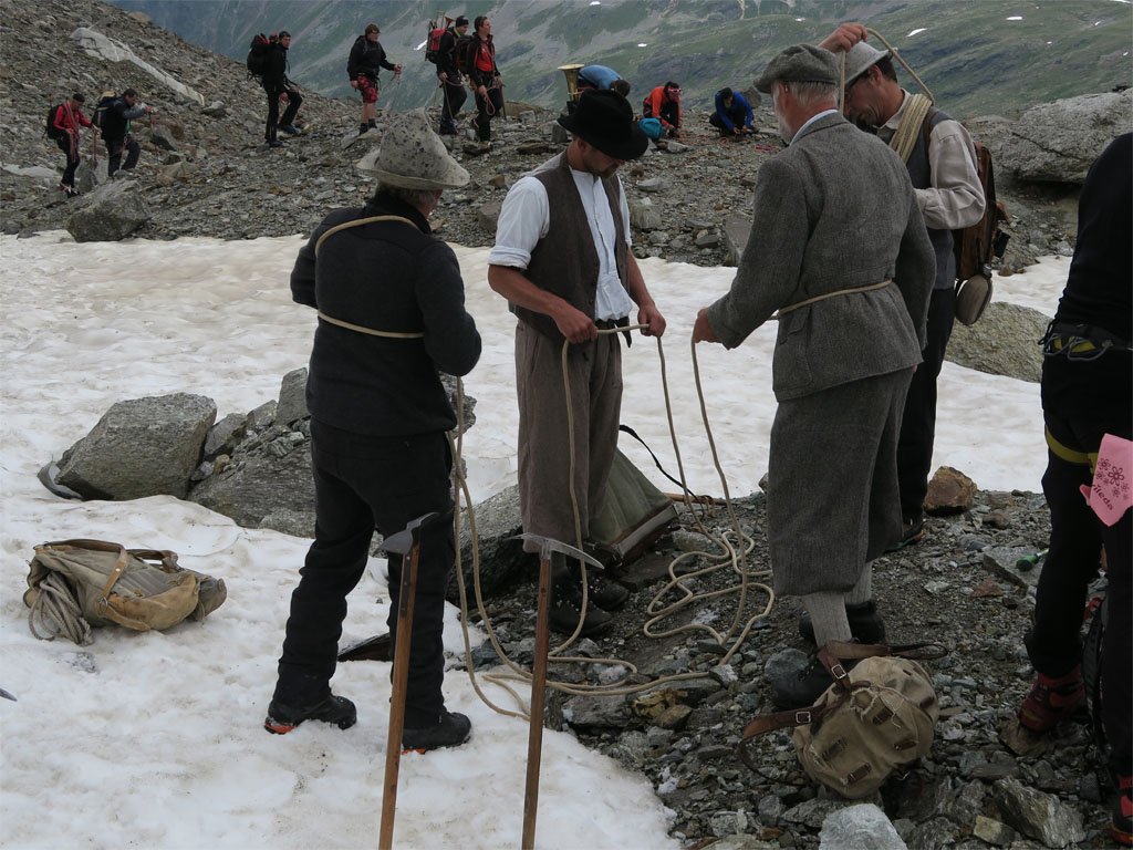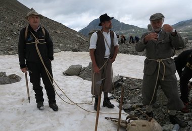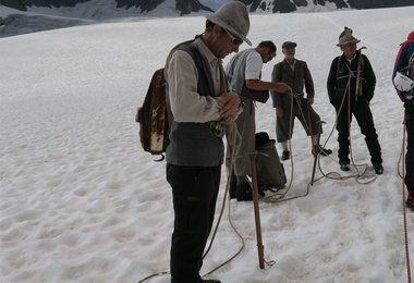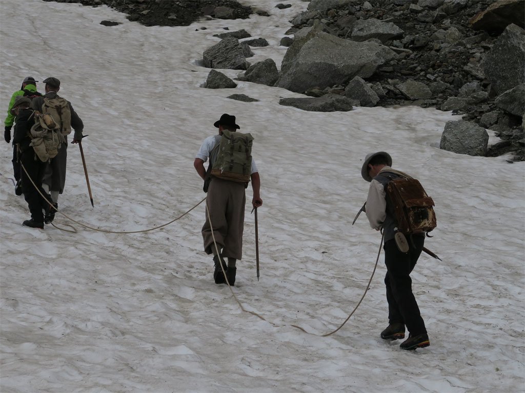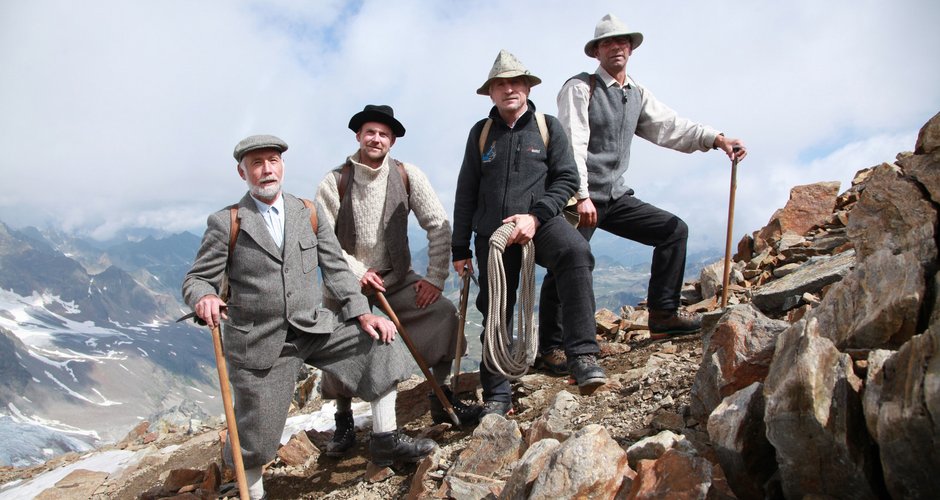 Historische Seilschaft kurz vor dem Gipfel (Foto: TVB Ischgl - Paznaun)