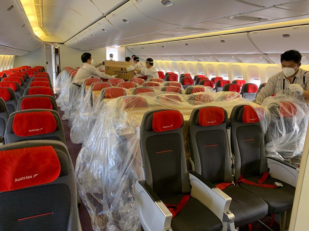 Die Wochenproduktion von 50.000 Masken und 800 Schutzmäntel half der Südtiroler Sanität über den ersten Engpass hinweg. Gleichzeitig haben wir über unseren SALEWA-Lizenzpartner in der chinesischen Stadt Xiamen insgesamt 20 Millionen medizinische Schutzmasken und 600.000 Schutzausrüstungen besorgt und in einer einzigartigen Zusammenarbeit mit Austrian Airlines und der Regierung Österreich über Wien eingeflogen. In einer außergewöhnlichen Aktion wurden dafür zwei Passagierjets Boeing 777 für den Warentransport verwendet, wobei auch alle Sitze des Passagierraums mit Kartonen befüllt wurden. Um unsere Fracht auch in der Passagierkabine zu transportieren, wurde von Austrian Airlines ein entsprechender Prozess erarbeitet – d.h. Sitzabdeckungen mussten angebracht werden, eine entsprechende Sicherung des Ladegutes wurde auch vom Flugzeughersteller Boeing freigegeben und die bereits verpackte Fracht musste neu gepackt werden, damit ein Transport in der Kabine möglich ist. Der Landeshauptmann von Südtirol hatte bei Bundeskanzler Sebastian Kurz um Hilfe gebeten, da die Transport-Flüge für die in China bereitgestellte Ware erst in 8 Tagen zur Verfügung gewesen wären. Damit keine Zeit verloren geht, brachte Österreich innerhalb von 24 Stunden eine Luftbrücke nach Xiamen auf den Weg. Das Verteidigungsministerium, das Innenministerium, der chinesische Botschafter und das Bundeskanzleramt sowie die AUA bewiesen eine unbürokratische Umsetzungsgeschwindigkeit, die ihresgleichen sucht. Damit werden die stark betroffene Region Nordtirol in Österreich, das Land Südtirol sowie der italienische Zivilschutz in Rom mit dringend notwendigem Sanitärmaterial versorgt, das Menschenleben retten wird. Unsere Kompetenzen in der Produktion von Bergsportbekleidung und Logistik, unsere internationale Vernetzung und unsere Kraft des schnellen Handelns haben uns dazu befähigt, für eine bestimmte Zeit nicht nur für unsere Marken Salewa, Dynafit, Evolv, Pomoca und Wild-Country zu arbeiten.