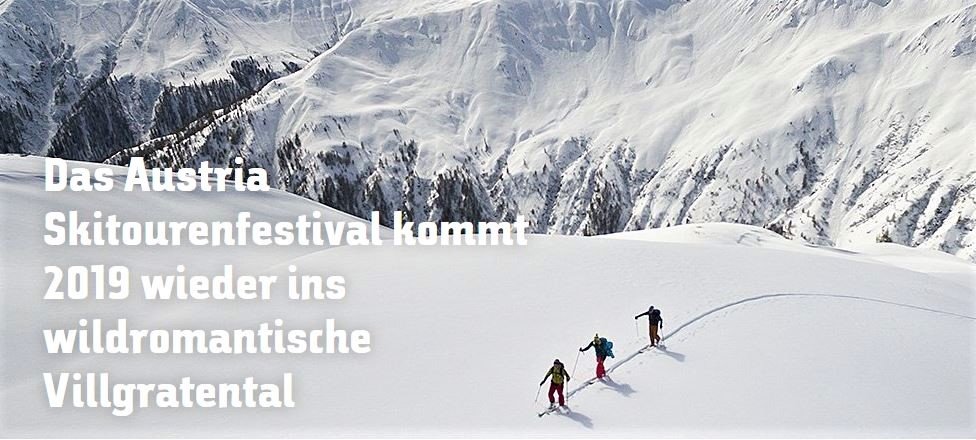Das 6. Austria Skitourenfestival vom 24. bis 27. Januar 2019 bringt Experten und Hobbysportler im wildromantischen Villgratental zusammen – für mehr Spaß und Sicherheit am Berg. Auf dem Programm stehen neben Skitouren im Villgratental dieses Jahr erstmalig auch Skitouren in Kartitsch und Obertilliach - alle unter der Anleitung staatlich geprüfter Berg- und Skiführer inklusive Training und Einführung in die Sicherheitsausrüstung. Auch heuer wieder gibt es kostenlose Verleihmöglichkeit von Skitouren- und Notfallausrüstung powered by Hervis sports und Hyphen. Ein abwechslungsreiches Rahmenprogramm mit Filmvorführungen und Fachvorträgen macht das Skitourenerlebnis perfekt.
