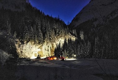 Eine malerische Winterlandschaft im weiten Tal hinter dem Matreier Tauernhaus. Ein kleiner Kessel mit einer Felswand, welche zum besten Eispark Österreichs umgebaut wurde, genau dort findet alljährlich das Eisfestival Osttirol statt! Steile bis fast überhängende Eisformationen, dazwischen Mixedroute in allen Schwierigkeitsgraden, aber auch flache Eisschilder und das ganz auf engstem Raum, besser geht es kaum, um sich langsam an seine Grenzen im steilen Eis vorzutasten.