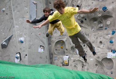 Die Veranstalter (DAV-Sektion Oberland), unterstützt von der DAV-Sektion München und dem DAV-Kletterzentrum München, hatten die Kletterbegeisterten mit einer Vielzahl an Attraktionen gelockt: 12 Routen und 60 Boulder waren in der Qualifikation geboten. Klimmzugwettbewerb und High-Jump-Contest (Gewinner: Afra Hönig und Simon Lang) forderten Jugendliche und Erwachsene (incl. 40+ Klasse) heraus. Die Kinder hatten viel Spaß mit Bierkastenklettern, Slacklinen und Klettern an der 25m Hangelleiter. Am Stand der Jugend des deutschen Alpenvereins galt es eine besonders knifflige Aufgabe zu lösen: wie kann ein rohes Ei aus 20 m Höhe abgeworfen werden ohne kaputt zu gehen? Um dem Schmuddelwetter etwas entgegen zu setzen wurden die Kletterer mit Grillwürsteln und warmen Waffeln for free versorgt. Für Fußballfans, die es gar nicht lassen konnten, wurden die aktuellen WM-Spiele live auf Großleinwand übertragen.