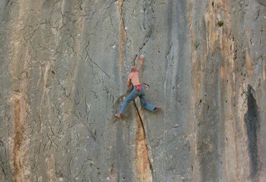Wichtigste Tour: The first and last (8b). Bis dahin hatte er noch nie so viel Zeit und Mühe in eine Tour investiert; so viel riskiert.